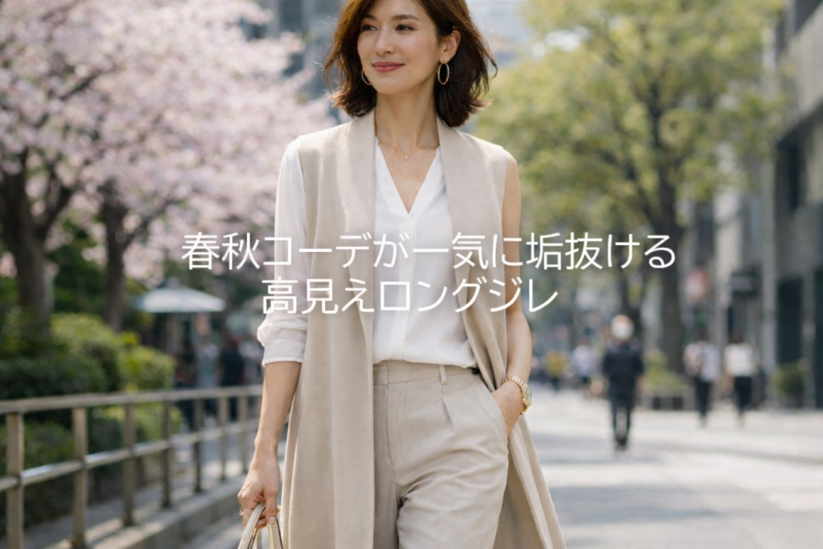 このロングジレは「春秋のコーデに迷う人」「体型カバーしたい人」に非常に相性が良い一着」