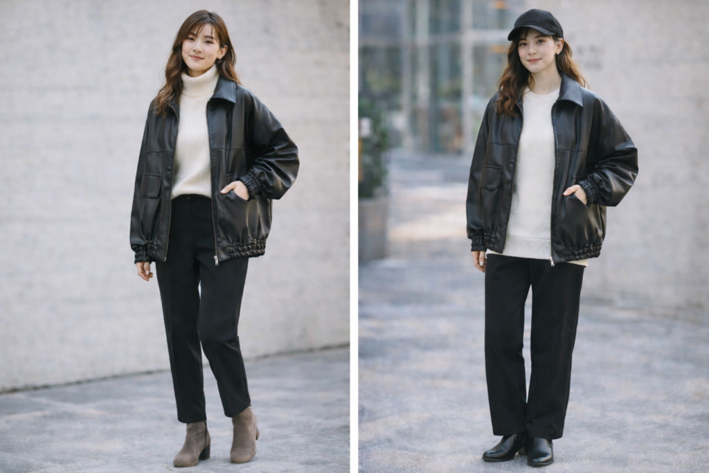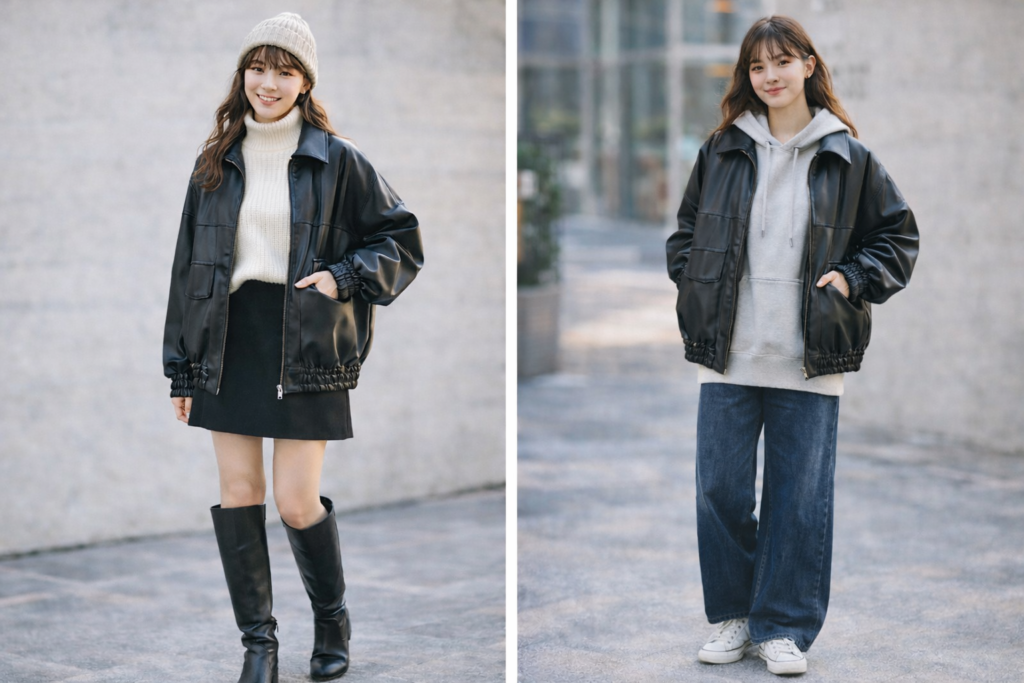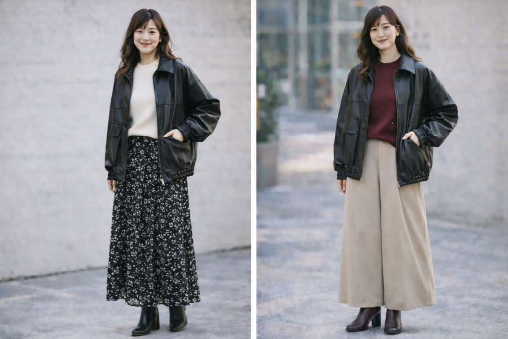 特に普段使いのアウターとしては、気軽に着られるフェイクレザーの方が扱いやすいと感じる人も多いでしょう。