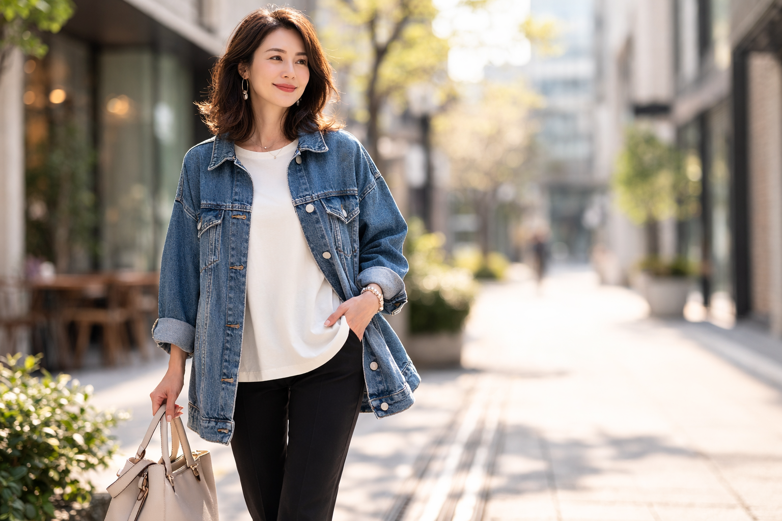 結論から言うと、このオーバーサイズデニムジャケットは年代ごとに“着こなし方”を変えれば、どの世代でも自然に取り入れられます。大切なのは「若作り」ではなく「バランス」です。