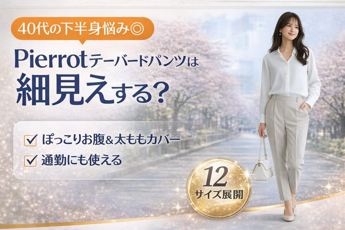 40代の下半身悩みに◎Pierrotテーパードパンツは細見えする?正直レビュー|サイズ感・口コミまとめ