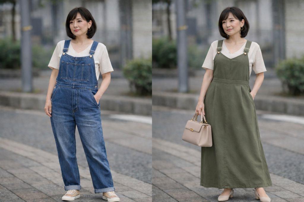 👉このポイントを押さえたサロペットを選べば、40代でも自然におしゃれに見えます。